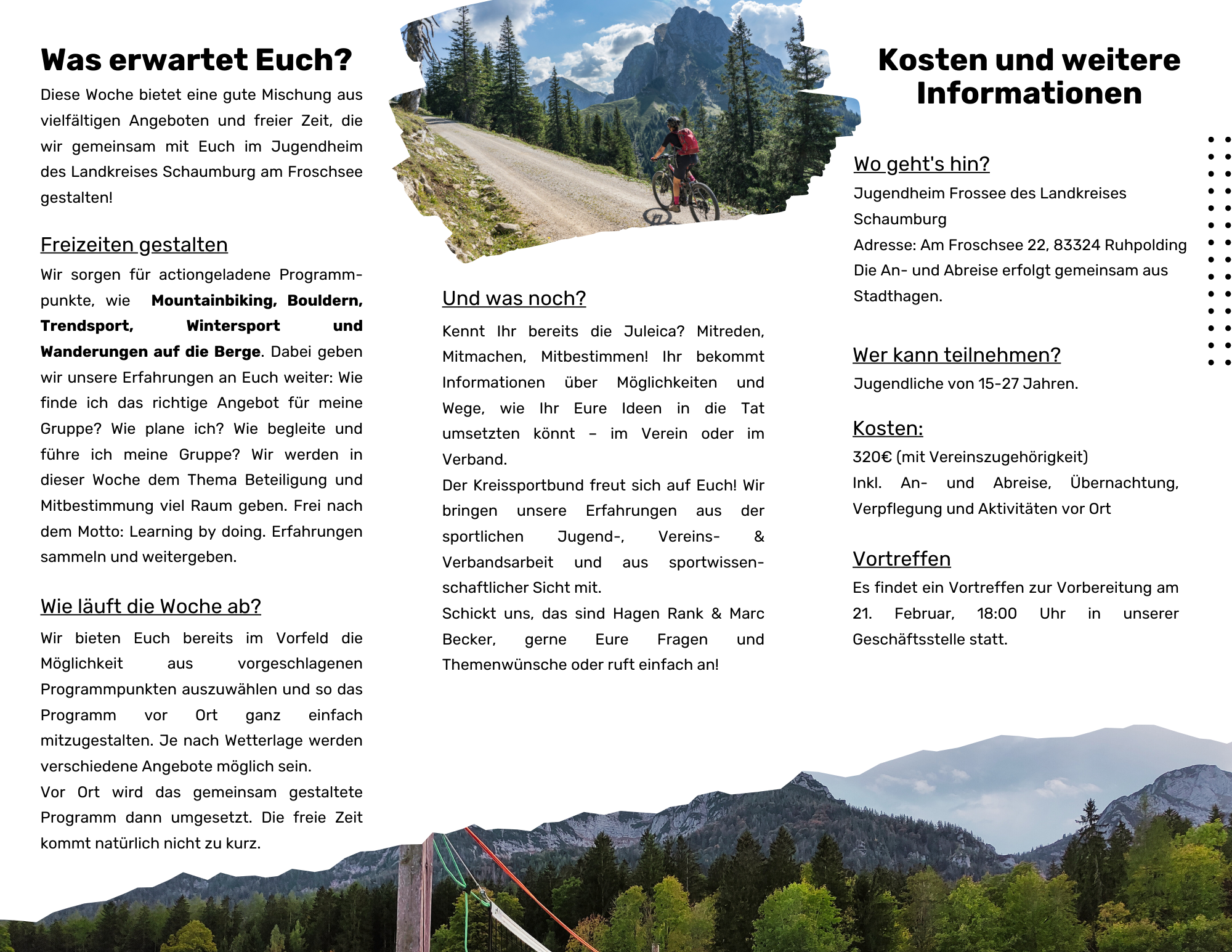 Sportliche Jugendfreizeiten in den Bergen gestalten und begleiten